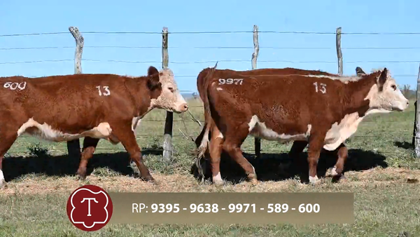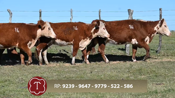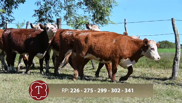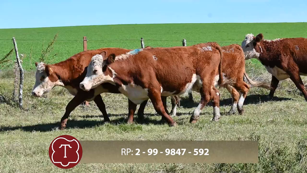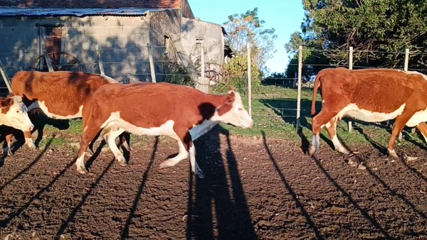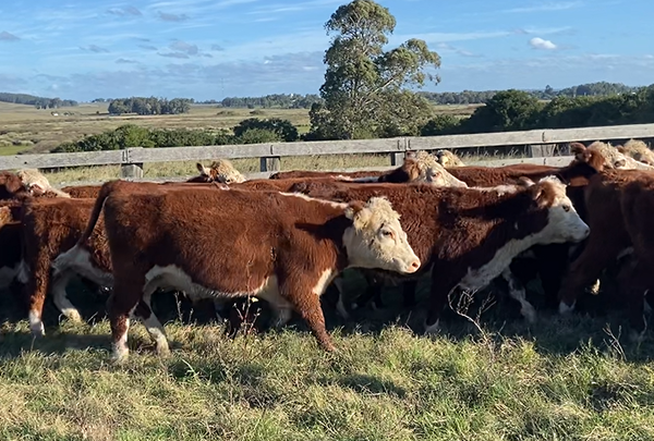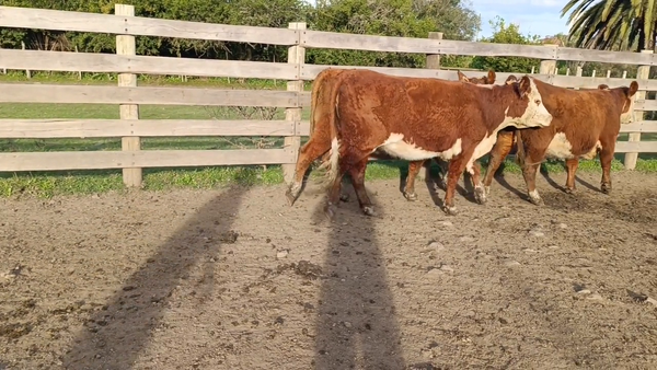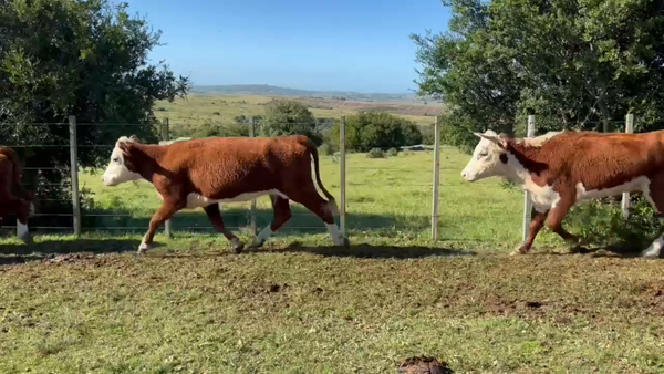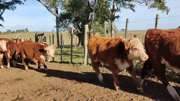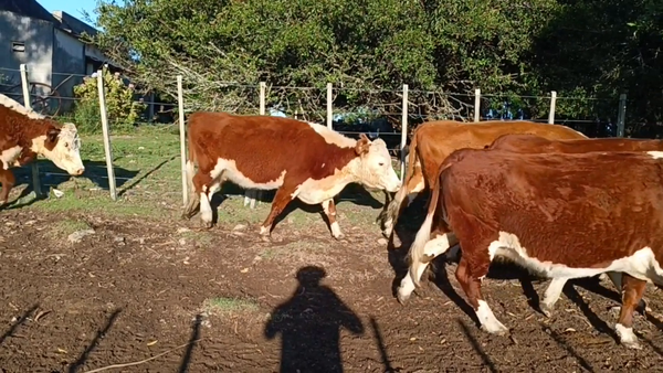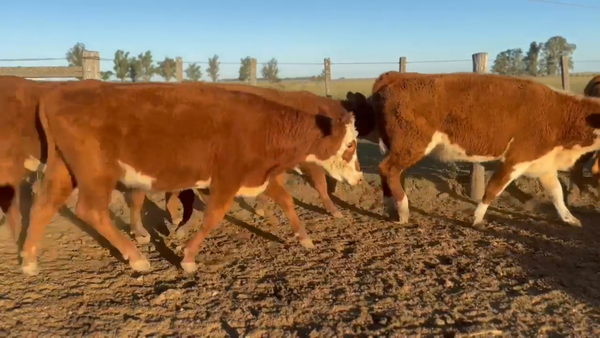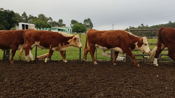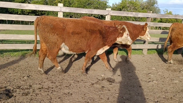 Buen lote de novillos Hereford. De buena y muy buena clase, uniformes, en general de buenas conformaciones largo, de buen hueso y correcto desarrollo para la edad. Están de campo, en buen estado, pesando el 24% entre 340-380kg, el 60% entre 380-450kg y el 16% superior de 450-500kg. Novillada sana, dócil, conocen eléctrico. Hay uno con abceso reventado. Muy linda reposición.