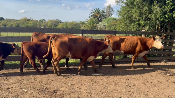"Destacado lote de vacas Hereford, con muy buena calidad racial y bien formadas con buenas conformaciones oseas, ideal para realizarles una excelente invernada. Rodeo que se trabaja hace años con hereford. Ganado manso que conoce electrico, la mitad sabe comer racion. Raza: 38 Hereford y 1 HeXX, Edad: 26 BLL Buena; 1 6D; 4 FP. (Boqueado 80%), Clase: Muy buena. / Estado: Bueno, Est. Rep.: Vacias con Ecografia. (Dr Mario Bonilla), Trat. Nutr.: Campo Natural, Pesada: 95% / Peso: Bruto / Prom.: 400 kg. / Max.: 491 kg. / Min.: 329 kg, Mio-Mio: SI / Garrapata: SI / 27 Mochas y 12 Astadas. Ubicación: Paso La Cantera, 35 km al norte de la ruta 9. Paraje: Paso La Cantera - DEPARTAMENTO DE MALDONADO Sanidad: Tickxan del 5/5/25 Detalle: 1 con mastitis. "
