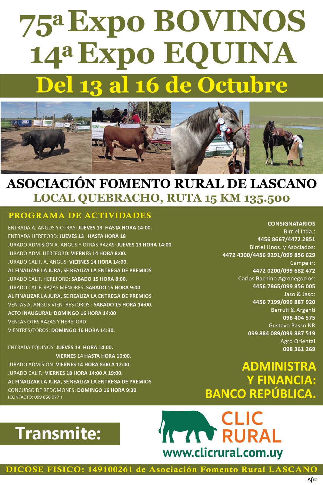 Agro Oriental, Asoc. Fomento Rural de Lascano, Berrutti United Breeders & Packers, Birriel Hnos y Asociados , Campelir S.A., Carlos Bachino, Gustavo Basso Negocios Rurales, Jaso y Jaso, Néstor Birriel Cal.